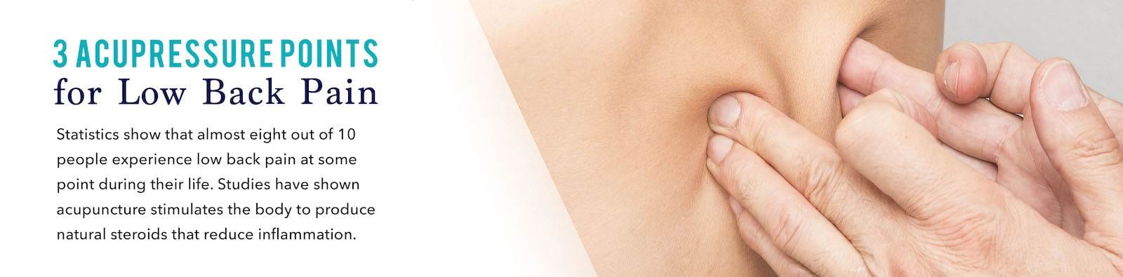 Along these lines, there are also some things that can be done at home to help with low back pain. Acupressure uses the same concept of acupuncture without the needles. By applying pressure to specific acupoints with either a finger or a smooth rounded instrument, it is possible to decrease low back pain until an acupuncture treatment can be scheduled. Here are three acupoints that can be used to help with low back pain.